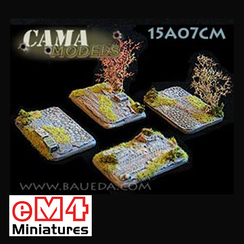 4 x Vehicle Scenic Bases (rural), 32mm x 50mm, supplied unpainted.