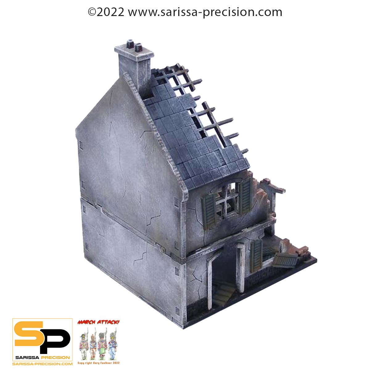 Typical of the ruins seen in Europe and Britain at the height of WWII, this bombed-out terrace is the ideal addition to any WWII wargaming table. It can also be used in post-apocalyptic skirmish games.