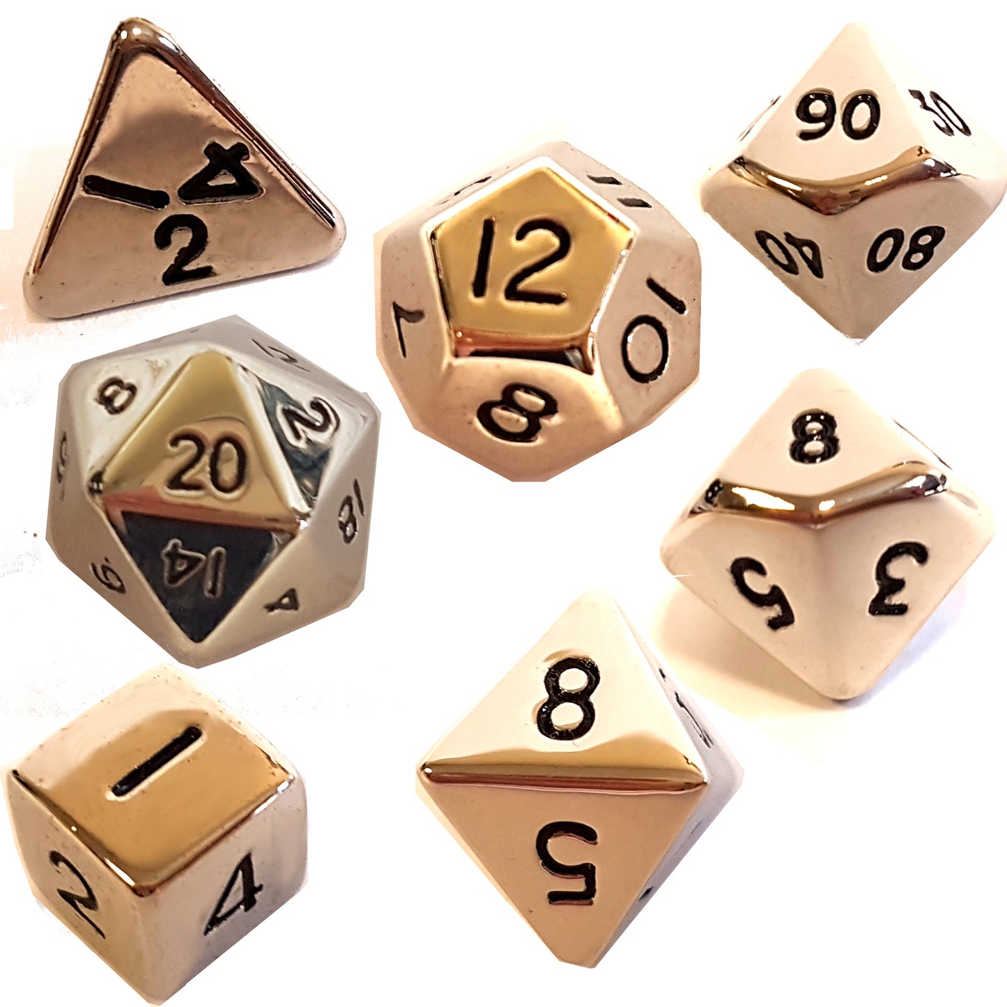 10mm Solid metal poly dice in chrome. A collectable item that you are going to want to show off in your next roleplay session.