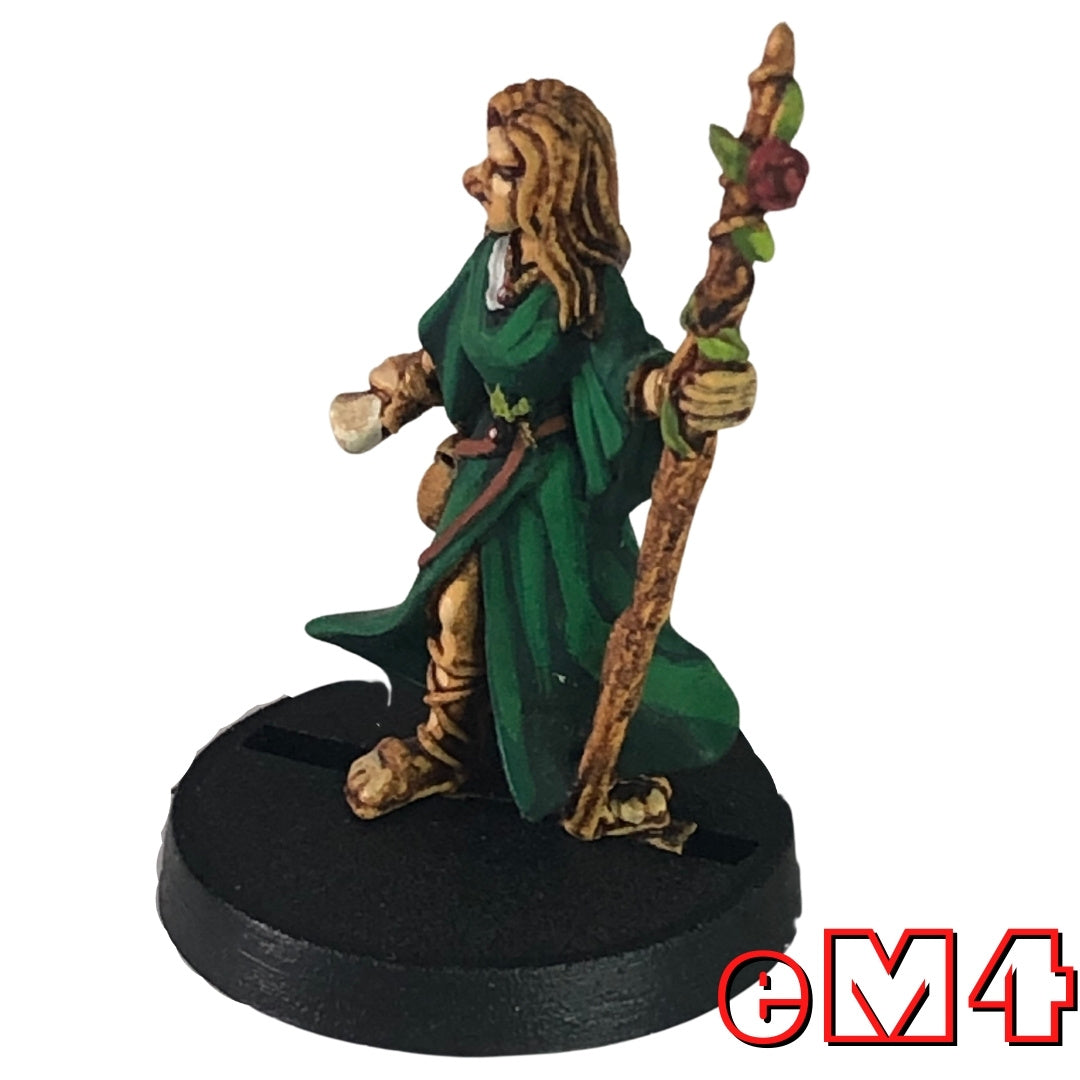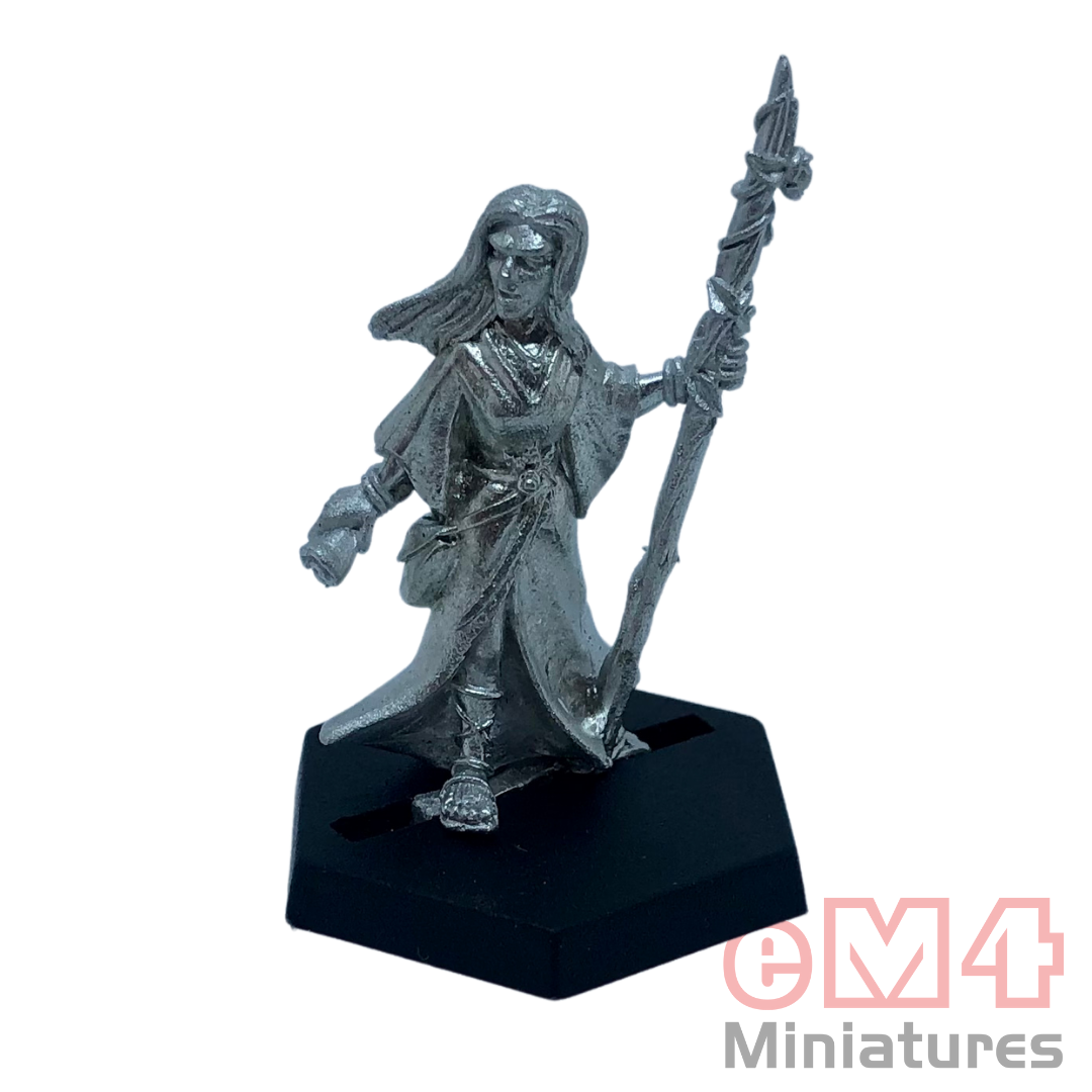 Armed with a scroll and staff, this elf spellcaster can make a great sorceress or druid.