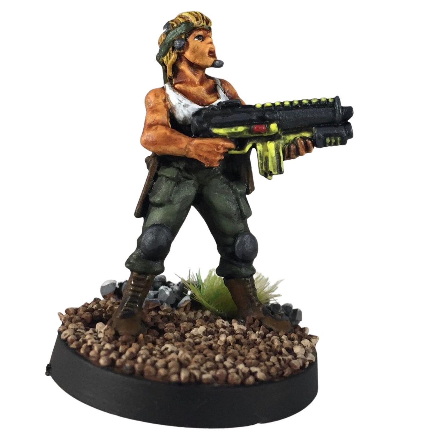 Female Trooper with Singlet Headband armed with a Military Assault Rifle - 28mm Metal Miniature - ideal for sci-fi and post modern genres' including em4's Combat Zone