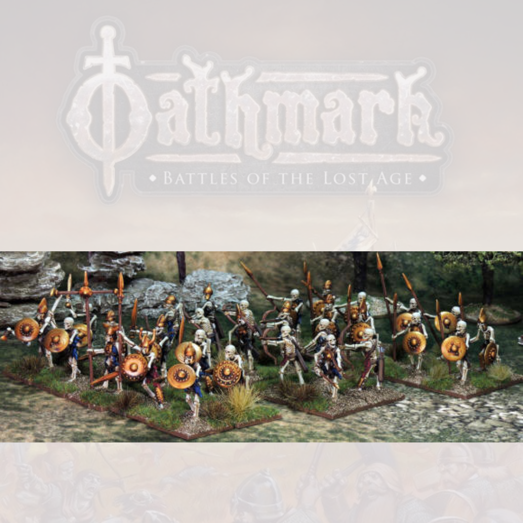 This boxed set offers enough parts of build 30 Skeleton Infantry for your Oathmark armies. These unyielding undead warriors can be armed with bows, spears, or hand weapons, and parts are also included to add banner bearers and officers to their ranks.