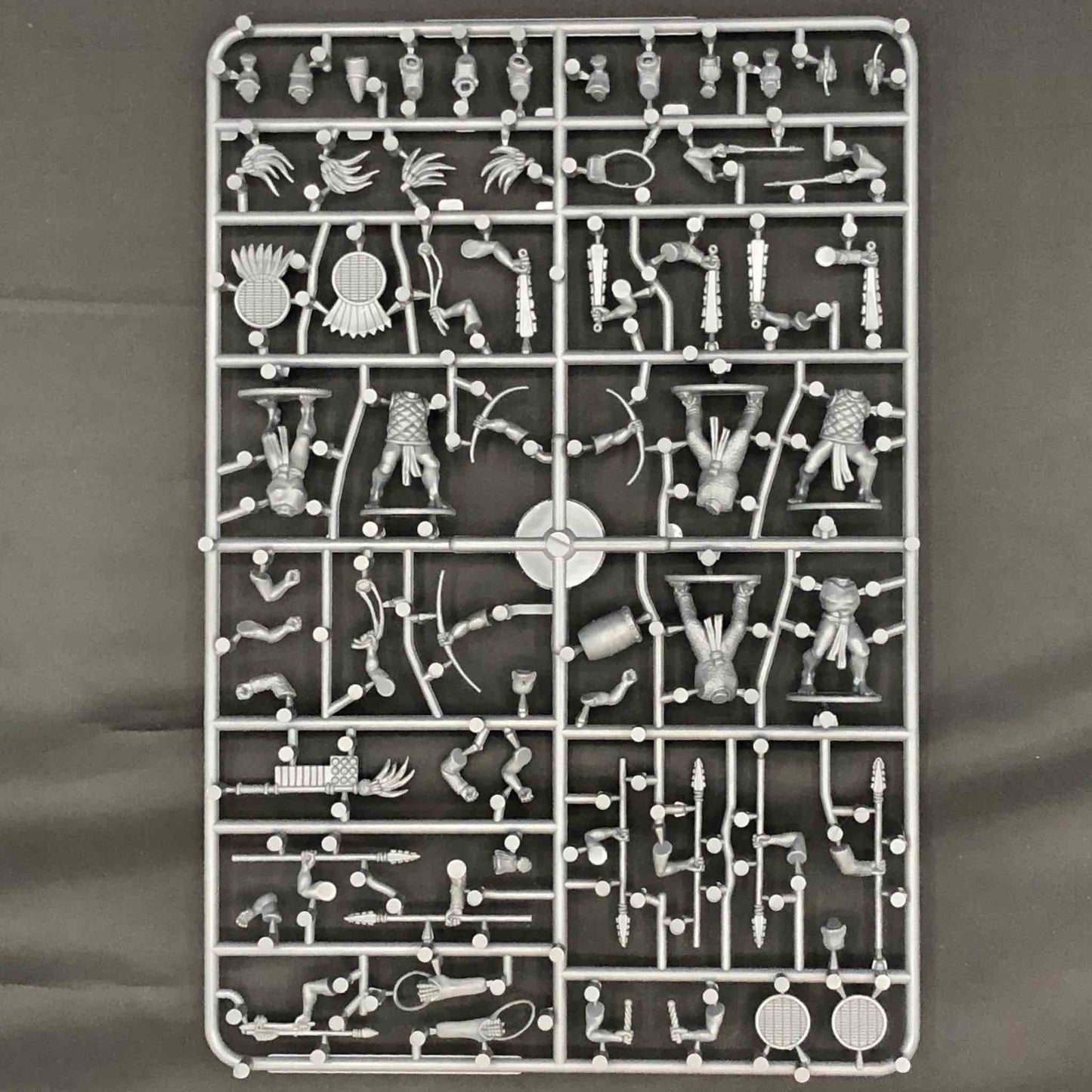 This hard plastic box set allows you to build up to 30 warriors equipped with bow, atlatl, machuahuitl, spears, slings, and more along with a variety of body and head types to build many of the warrior types. There are also components to build full command.