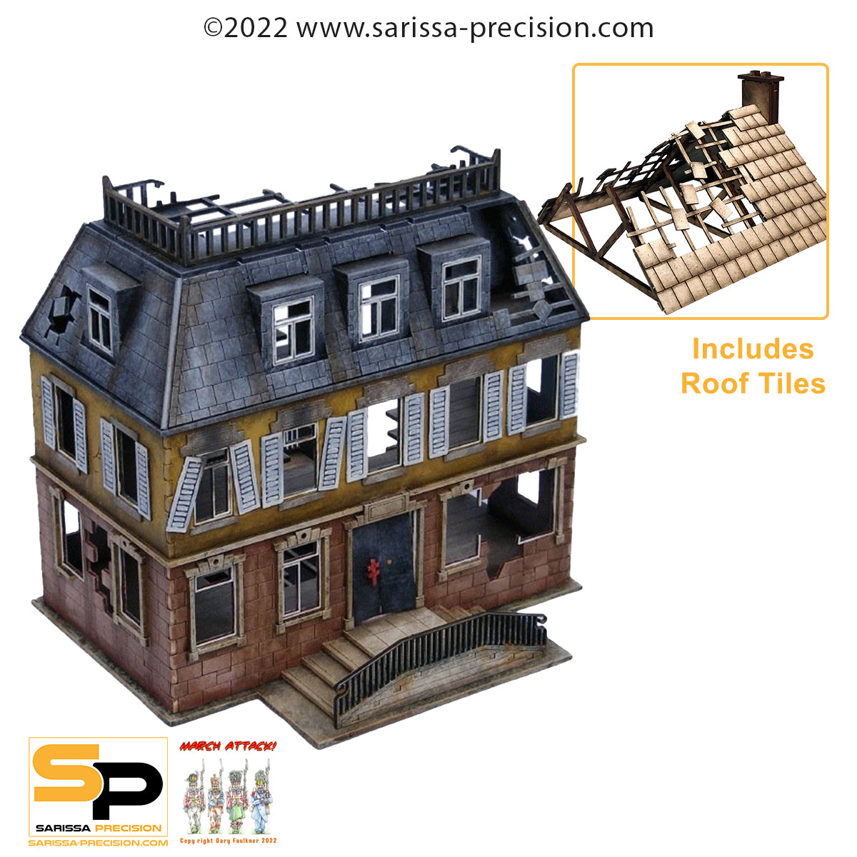 This kit is both typical of destroyed chateaus found across Europe during WWII and perfect for scenario objectives or centrepieces on WWII tables. It can also be used in post-apocalyptic wargames.
