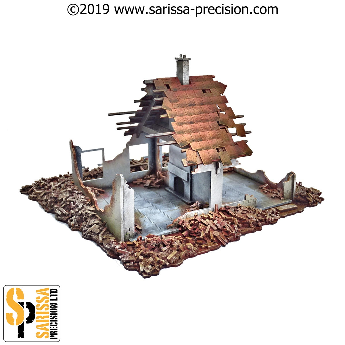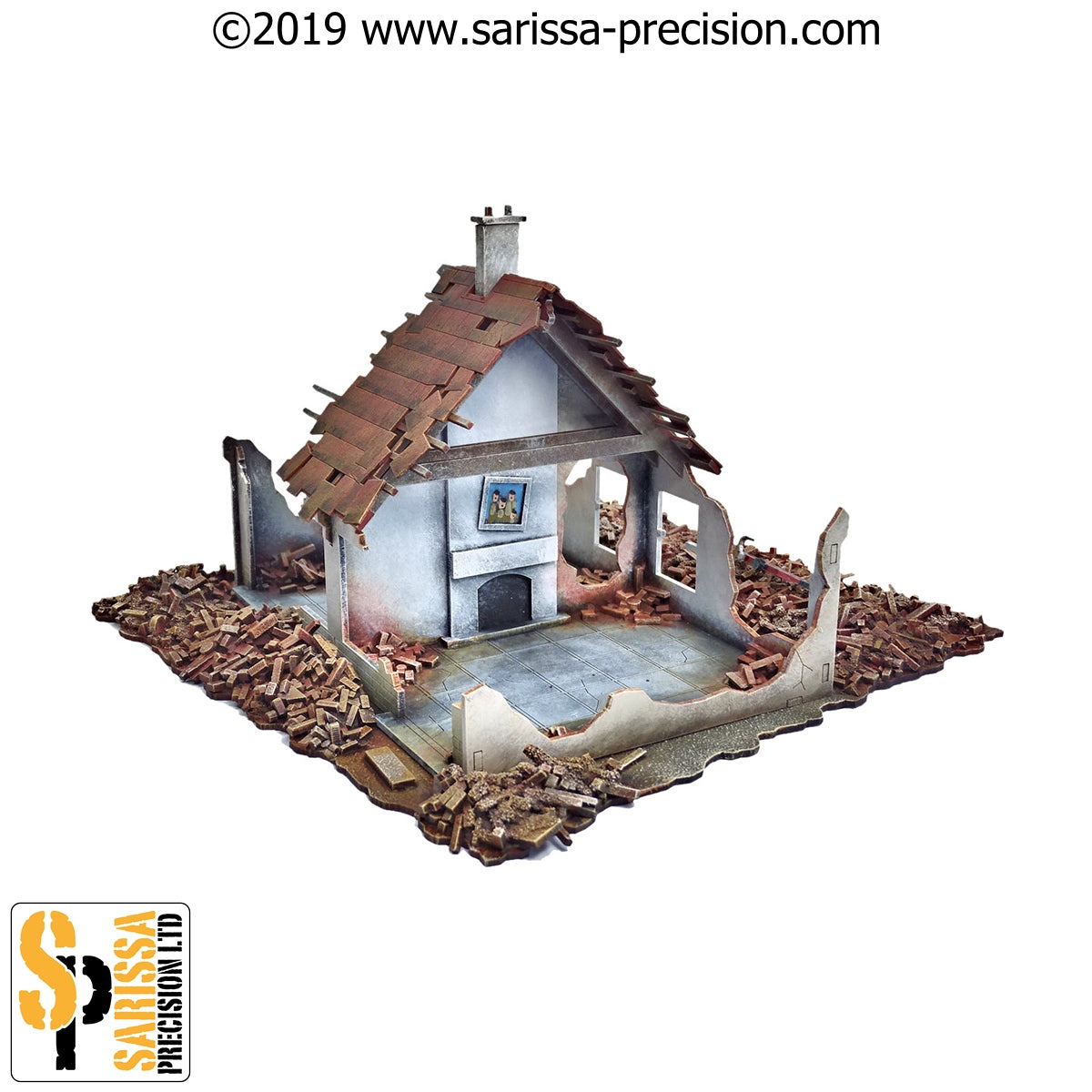 Destroyed Single-Storey Semi (28mm) - World War Europe MDF Scenery