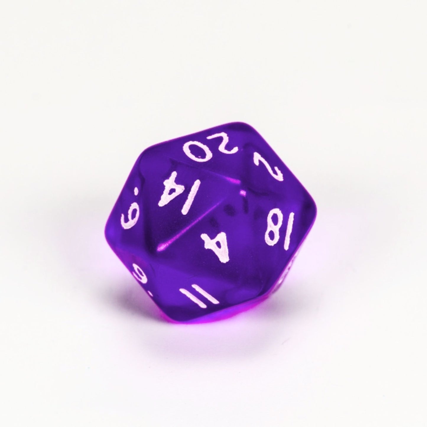 Gem D20 (20 sided, 1-20) poly dice with white digits
