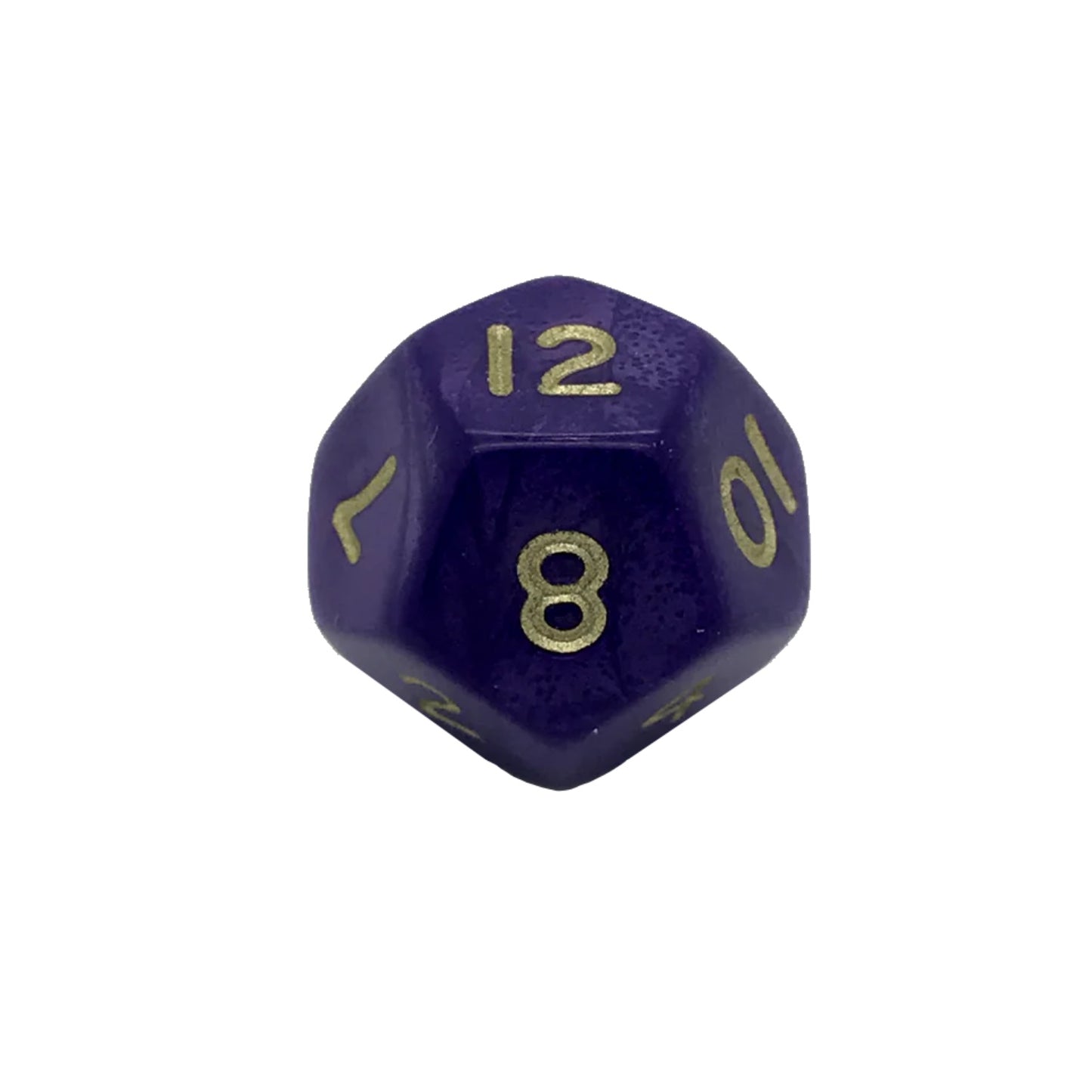 Pearl purple D12 (12 sided) poly dice with gold digits